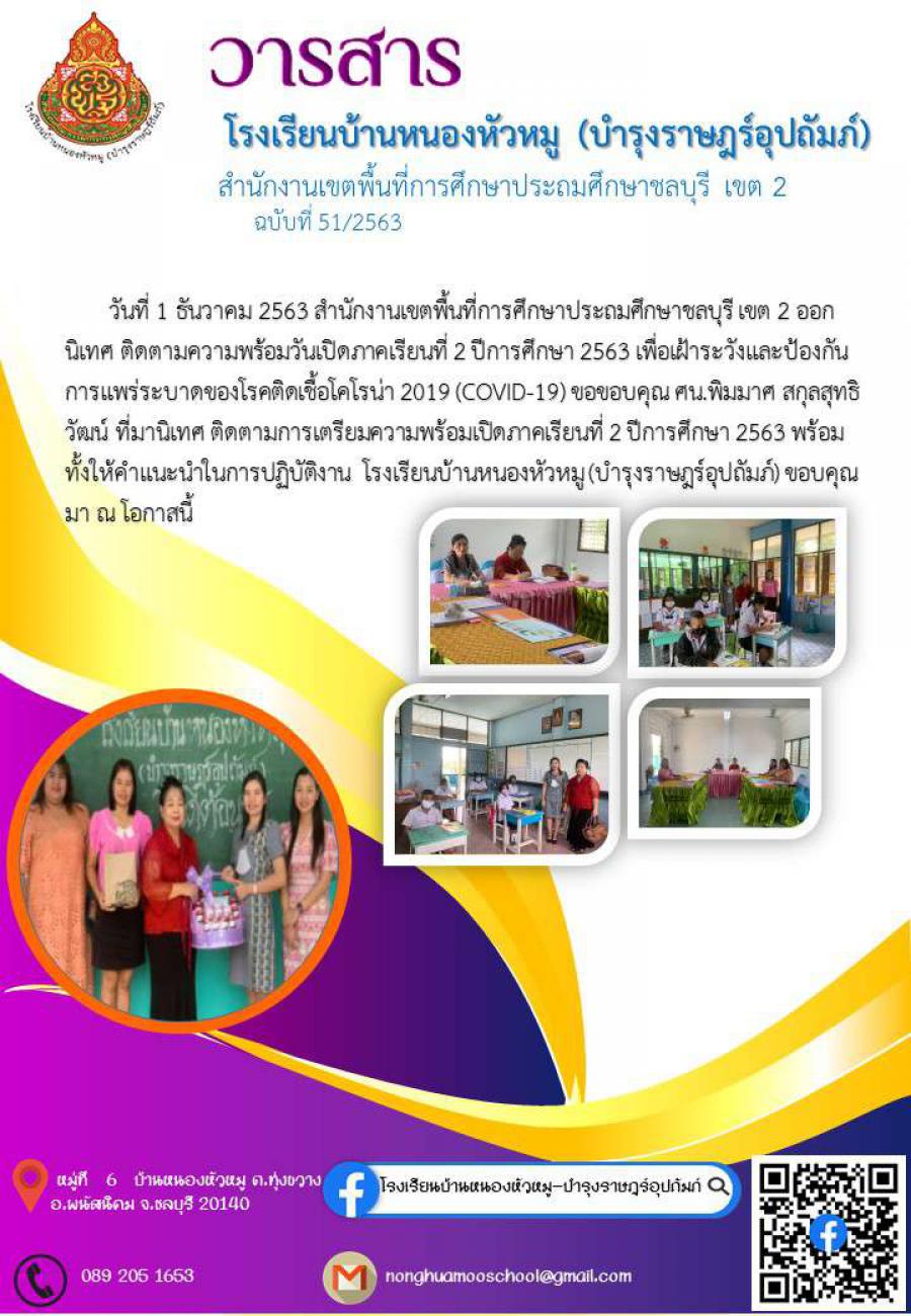 สำนักงานเขตพื้นที่การศึกษาประถมศึกษาชลบุรี เขต 2 ออกนิเทศ ติดตามความพร้อมวันเปิดภาคเรียนที่ 2 ปีการศึกษา 2563