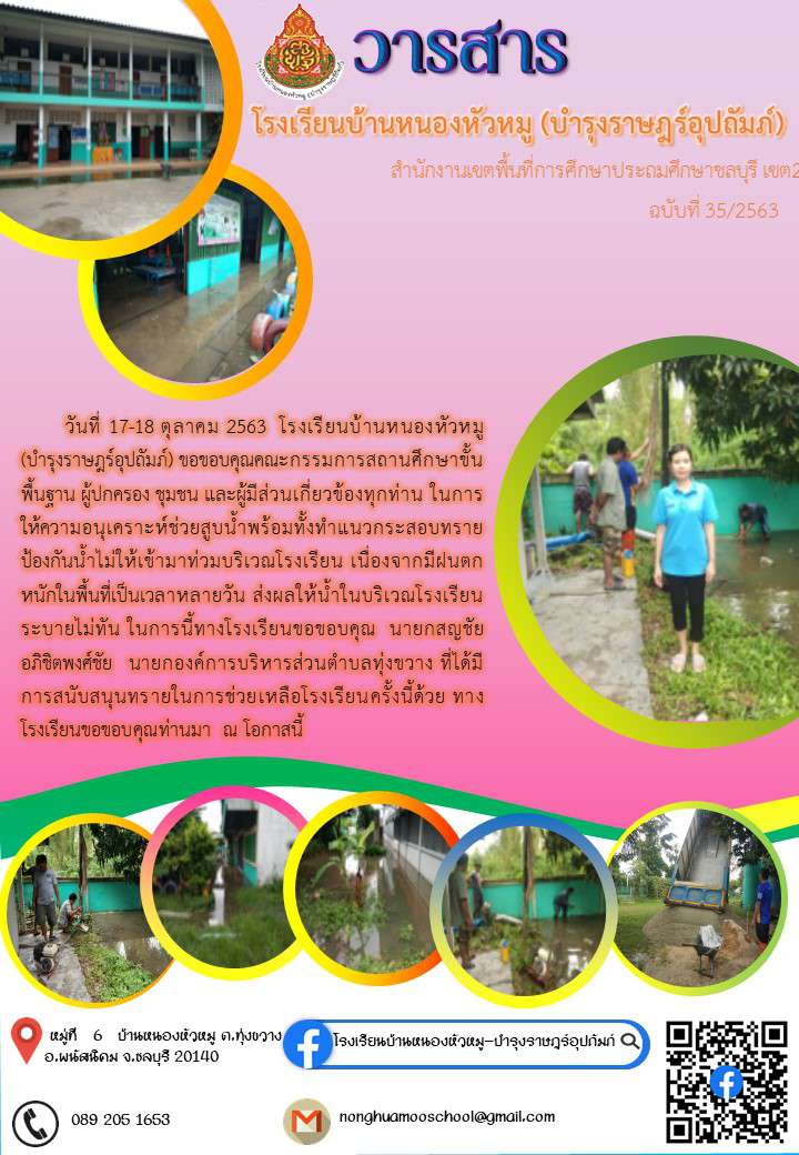 ขอขอบคุณคณะกรรมการสถานศึกษาขั้นพื้นฐาน ผู้ปกครอง และผู้มีส่วนเกี่ยวข้องทุกท่าน ในการให้ความอนุเคราะห์ช่วยสูบน้ำ จากการที่ฝนตกหนักในพื้นที่หลายวัน