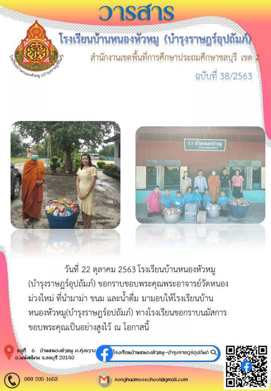 ขอขอบคุณพระอาจารย์วัดหนองม่วงใหม่ ที่นำมาม่า ขนม และน้ำดื่ม มามอบให้